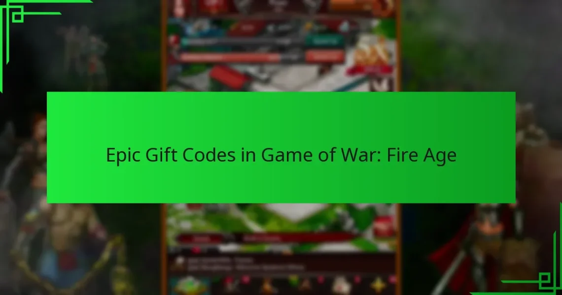 Epic gift codes in Game of War: Fire Age are special codes that players can redeem for various in-game rewards. These codes enhance the gaming experience by providing valuable resources and items that can aid in gameplay.