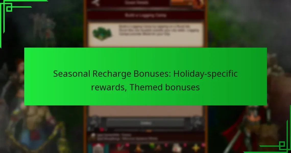 Seasonal recharge bonuses are special rewards in Game of War: Fire Age, designed to enhance player engagement during holidays. These bonuses provide unique items and resources, often featuring limited-time offers with bonus multipliers and themed rewards. To qualify, players must meet certain criteria, making it essential to understand the eligibility requirements and time frames to maximise benefits.